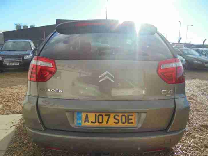 , Adjustable Steering Column-Wheel - Rake-Reach,Air Bag Driver,Air Bag Knee - Driver,Air Bag Passenger,Air Bag Side - Driver-Passenger,Air-Conditioning,Alloy Wheels - 16in,Anti-Lock Brakes,Armrest - Front,Body Coloured Bumpers,Carpet,Central Door Locking - Remote,Centre Rear Seat Belt,Cruise Control,Deadlocks,Electric Windows - Front-Rear,Electronic Brake Force Distribution,Electronic Stability Programme,External Temperature Display,Front Fog Lights,Head Restraints - Front-Rear,Immobiliser,In Car Entertainment - Radio-CD,In Car Entertainment - Radio-CD-MP3,Mirrors External - Electric-Heated,Power-Assisted Steering,Seat - ISOFIX Anchorage Point - Four Seats - Front andand Rear,Seat Belt Pre-Tensioners - Front,Seat Height Adjustment - Driver,Seating Capacity - Five Seats,Spare Wheel,Speakers - Six,Steering Wheel Leather,Steering Wheel Mounted Controls,Sun Visor,Tinted Glass,Traction Control System,Trip Computer,Upholstery Cloth,Windscreen Wiper Manufacturer Citroen Model C4 Picasso Type MPV Doors 5 Number of Seats Other Colour Brown Steering Wheel Right-hand drive Mileage 80,000 Miles First Registration Date 30/05/2007 Model Year 2007 Condition Used Previous Owners 2 Engine Size (in ccm) 1,560 Power 108 BHP Transmission Semi-Automatic Fuel Diesel Emission class -- Safety Features Driver Airbag Passenger Airbag Side Airbags Anti-Lock Brakes (ABS) Electronic Stability Program (ESP) Immobiliser Safety Belt Pretensioners Exterior Features Alloy Wheels In-Car Entertainment AM/FM Stereo CD Player Interior/Comfort Air Conditioning Central Locking Cruise Control Electric Windows Power-assisted Steering (PAS) Tilt Steering Wheel Visit us for a test drive
